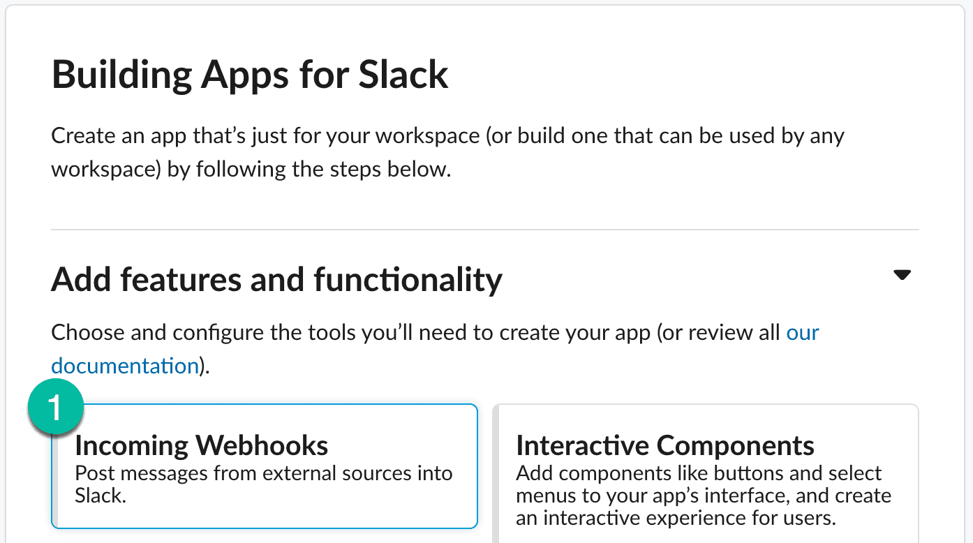 To take advantage of Slack notifications, you first need to create a custom Slack application to handle the webhook message.