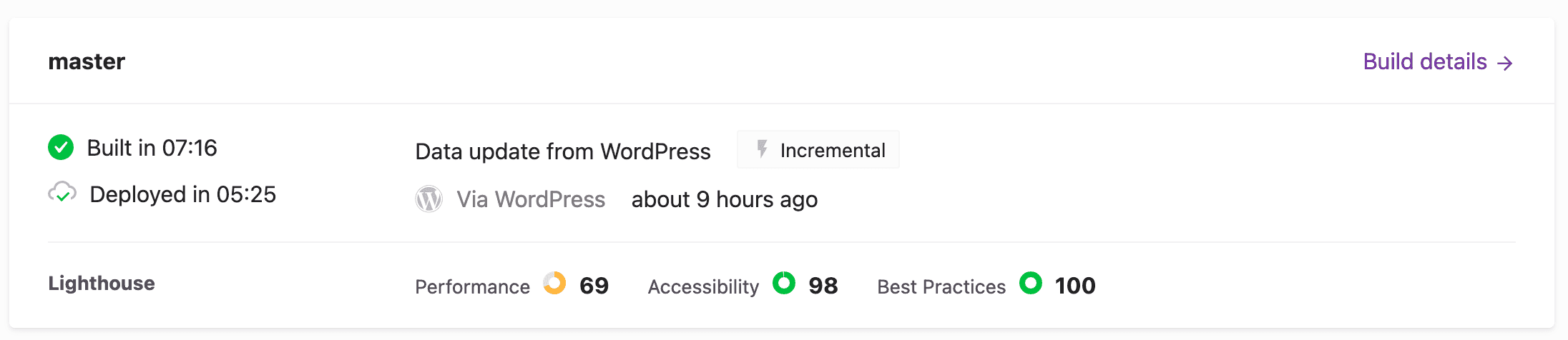 However, if the build is triggered by one of the officially supported CMSs, the build card will indicate the name of the CMS that triggered it.