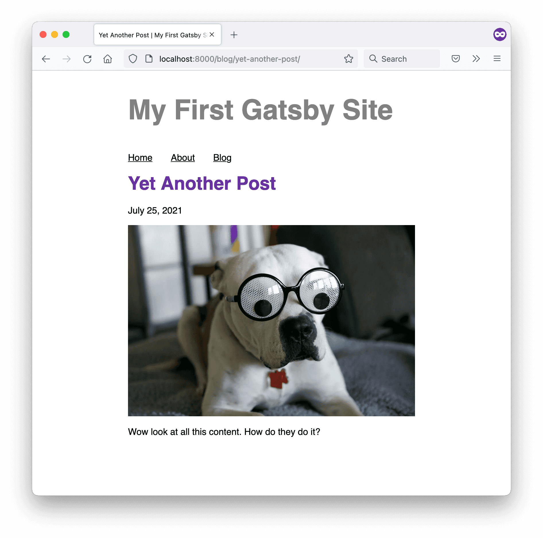 Now, when you visit each of your blog post pages, you should see the corresponding hero image rendered before the body of your post!