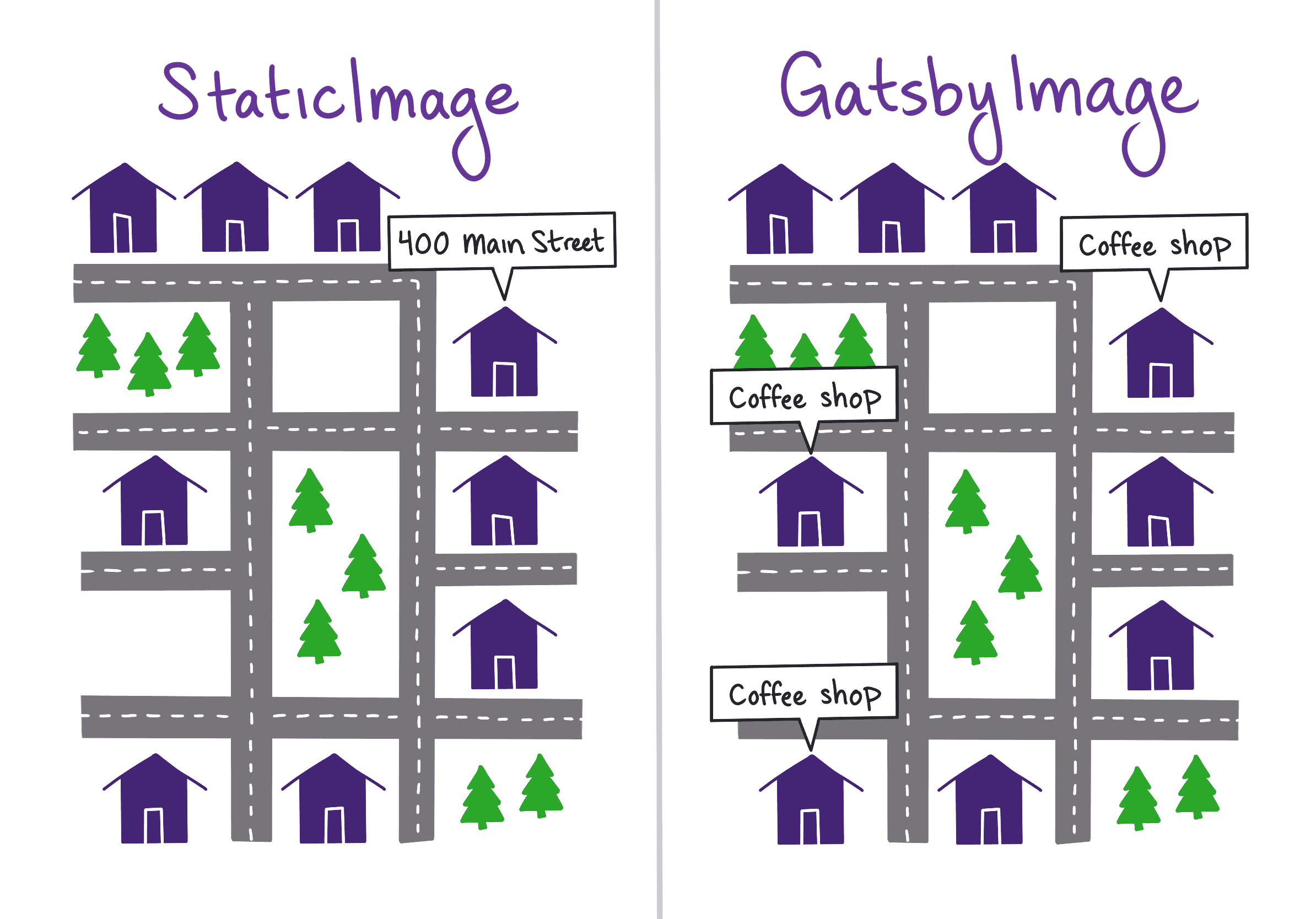 GatsbyImagecomponent is like asking for directions more generically. If you ask someone to point you to the best coffee shop in town, where you end up will depend on whom you ask and what their personal preferences are.